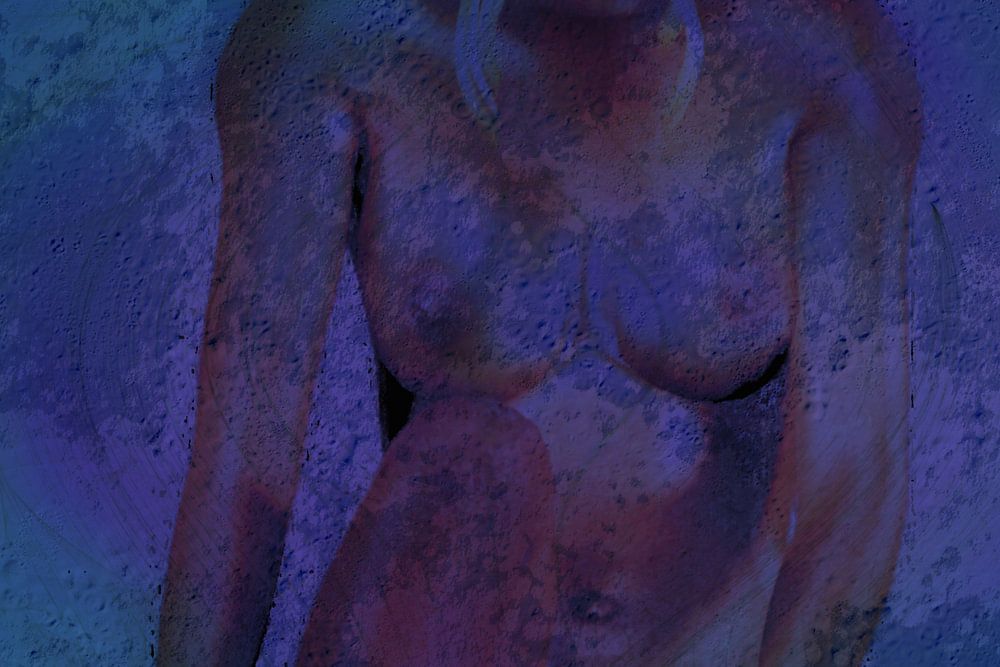 Naomi naakt digitale impasto en acrylverf portret schilderij in paarse kleuren