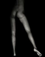 Deze zwart-witfoto combineert schoonheid en eenvoud om een kunstwerk van de hoogste kwaliteit te maken. Deze foto toont je een kijkje achter de schermen in de wereld van het ballet, omdat het per ongeluk werd genomen toen het model niet was voorbereid. Het ontbreken van poseren op deze foto maakt het echt, eenvoudig en authentiek. Het naaktmodel, Annie, is een professionele danser, maar op deze foto kun je een glimp opvangen van de echte persoon achter de ballerina. Ze was niet voorbereid op deze foto en voert daarom niet de klassieke balletstand uit die ze van plan was te demonstreren.