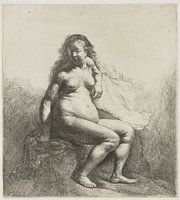 Naakte vrouw, gezeten op een verhoging, Rembrandt van Rijn, 1629 - 1633
