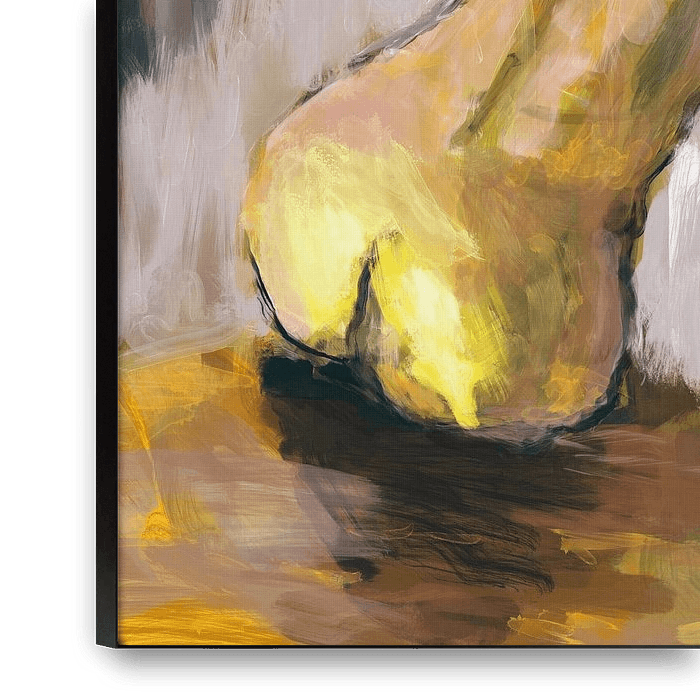 Koop dit moderne kunstwerk Naakte vrouw, modern schilderij in geel en paars. van Hella Maas op canvas, aluminium dibond, (ingelijste) fotoprint, behang en ArtFrame, op maat geprint in Fine-Art kwaliteit.