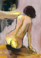 Koop dit schilderij Naaktportret met mooie lichtval. Vrouwelijk naakt schilderij. van Hella Maas als reproductie geprint op canvas, aluminium dibond, (ingelijste) fotoprint, behang en ArtFrame. Voor jou op maat geprint in Fine-Art kwaliteit.