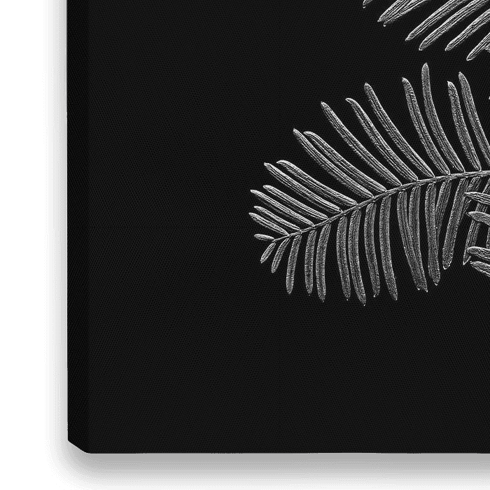 Een zwart/wit foto van een naaldentak, fine art. De diep zwarte achtergrond vervreemd de natuurlijke uitstraling van het onderwerp. De belichting benadrukt de textuur van de tak.
