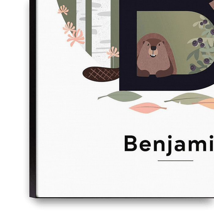 Alles met de B van Benjamin. Zoek zo veel mogelijk woorden met de B. Beer, bever, bus, bomen, bergen, bloemen, blaadjes, bessen, berken, bewolking... En wat dacht je van boven, beneden, blij of buiten? Fantaseer erop los en verzin je eigen verhaal.
