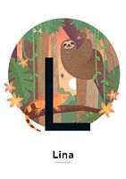 Alles met de L van Lina. Zoek zoveel mogelijk woorden met de L. Een luiaard tussen de lianen en een liggende leguaan. Een lieveheersbeestje en een libelle en in de verte een luchtballon.