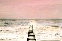 Een krib steekt uit in de Baltische Zee in een stormachtige zee. Ochtendlicht met uitzicht naar het noorden bij zonsopgang.