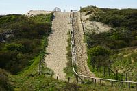 Strandopgang in Noordwijk, Zuid-Holland. Een steil pad over de laatste rij duinen op weg naar het strand,