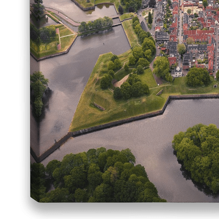 Dit is een luchtfoto van het stervormige fort van Naarden, Noord-Holland. De vesting was onderdeel van de Hollandse waterlinie.