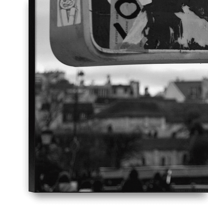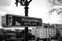 Deze foto is onderdeel van een zwart-wit serie van bordjes in Parijs.
