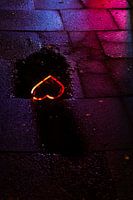 Nacht boven St. Pauli: weerspiegelde neon harten van Nils Steiner