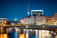 Uitzicht over de rivier Spree naar de televisietoren in Berlijn