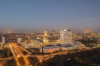 Fotograferend vanaf de Euromast, zag ik de nacht vallen over Rotterdam. De vele lichtjes gaf het een sprookjesachtige vertoning, zoals hier het Erasmus MC. Tijdens het blauwe uurtje maakte ik deze landschapsfoto met lange sluitertijd (long exposure). De vele auto's zorgden voor mooie, gekleurde strepen op de wegen die daardoor mooi uitgelicht worden. Nachtfotografie is een mooie tak van fotografie.
