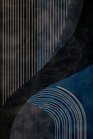 Dit werk toont een krachtig contrast van donkerblauw en zwarte lijnen die samen een nachtelijke scene suggereren. De lijnen variëren van fijn tot grof, wat een interessante textuur en dimensie geeft. Het zou goed passen in een modern en strak interieur, en brengt een sterk visueel element in een ruimte die speelt met licht en schaduw.