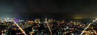 Deze indrukwekkende luchtfoto, genomen vanaf Naklua Road, toont het volledige gebied van Naklua in de voorgrond en rechterzijde, met de heldere stadslichten van Pattaya City links aan de horizon. De stad baadt in een zee van licht onder een donkere hemel, terwijl de kustlijn zacht oplicht door de reflectie van straat- en gebouwverlichting. De beroemde Wolkenkrabbers van Wong Amat Beach en het iconische heiligdom Sanctuary of Truth zijn duidelijk zichtbaar. Deze foto vangt de levendige, moderne energie van Pattaya in contrast met de rustige, residentiële sfeer van Naklua.