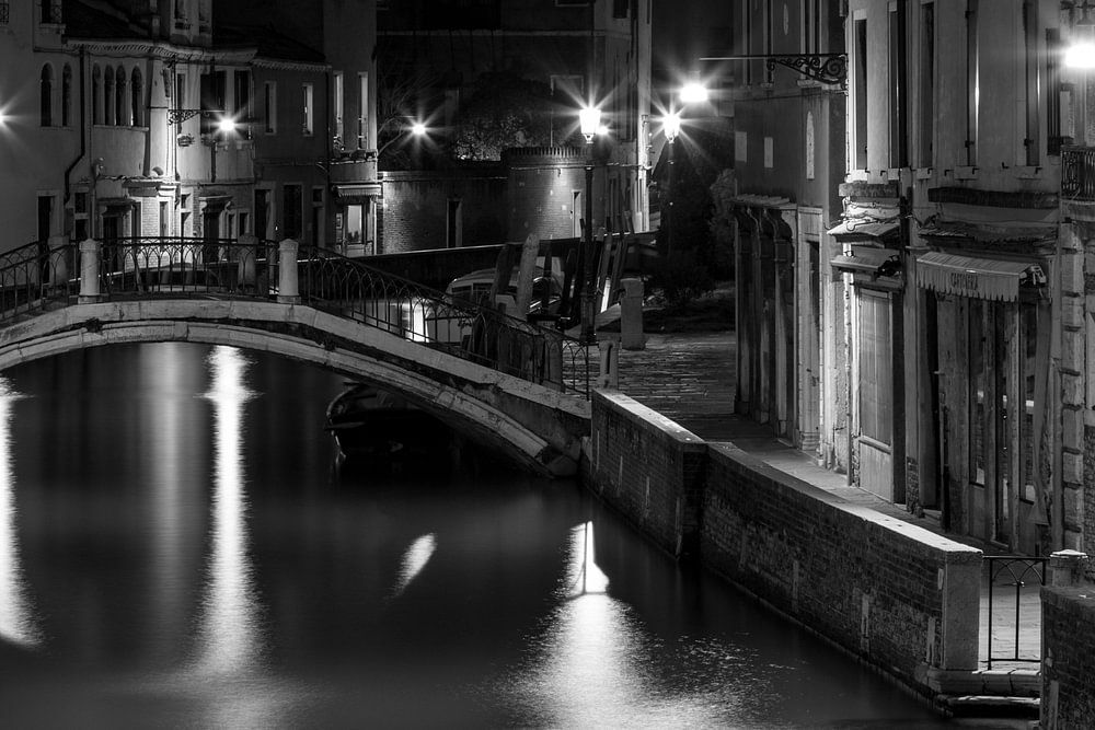 Een kanaal in Venetië (Italië) in de nachtelijke uurtjes.