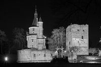 Kasteel Duurstede in Wijk bij Duurstede 's avonds gefotografeerd in het nachtelijk zwart.