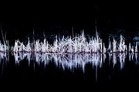 Alsof er middenin de nacht een spotlight op het riet is gezet.
