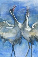 Koop dit vogel kunstwerk Nachtelijke Zingende Kraanvogels van Retrotimes op canvas, aluminium dibond, (ingelijste) fotoprint, behang en ArtFrame, op maat geprint in Fine-Art kwaliteit.