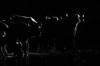 Kafferbuffels komen 's nachts drinken bij een waterpoel in Mana Pools, Zimbabwe