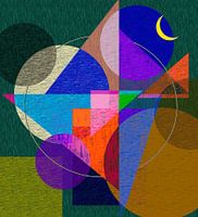 Dit abstract heb ik gemaakt toen ik zat te wachten tot de Perseïden zouden vallen. Vandaar de donkere tinten en het kleine Maantje. Figuratief werk met driehoeken, cirkels en rechthoeken.