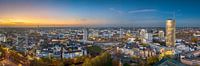 Dit panoramische beeld van de skyline van Essen heb ik gemaakt op een herfstavond. De foto is samengesteld uit meerdere frames die aan elkaar zijn geplakt om het uitgestrekte stadslandschap van Essen te laten zien, een van de belangrijkste stedelijke centra van Noordrijn-Westfalen, terwijl elk detail van de levendige skyline 's nachts behouden blijft.