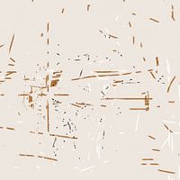 Bruine, zwarte en witte lineaire elementen liggen verspreid over een lichte achtergrond en creëren een minimalistisch geometrisch ontwerp. De abstracte opstelling creëert een gevoel van beweging en diepte.