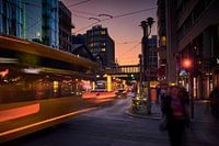 Het is een foto gemaakt met een lange sluitertijd waardoor de je de route van de stadsbus in de foto ziet. Het was wel ff een dingetje om alles goed te krijgen bij het maken van deze foto. Juiste hoogte, juiste moment van de bus, de belichting en noem maar op om de juiste sfeer van dit verkeersknooppunt goed in beeld te krijgen. Het station, de tram, auto's fietsers en voetgangers, ze zijn er allemaal, samen in één foto.