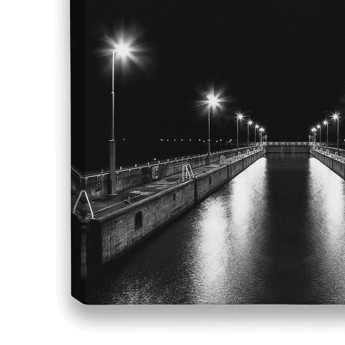 Foto is genomen bij het Naviduct in Enkhuizen (Noord Holland) met een nabewerking in Photoshop om de nachtelijke sfeer in een sluis te benadrukken.