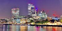 Nachtzicht op de Londense skyline met reflecties op de Theems - zakenwijk met vele kleurrijke lichtjes