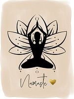 Dit ontwerp toont een vrouw in de lotushouding. Deze typische yogahouding, een van de bekendste yogatermen - Namaste - en de lotusbloesem worden gecombineerd op deze unieke poster.