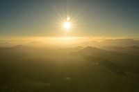 Vroeg in de morgen foto's maken vanuit een luchtbalon boven de woestijn van Namibië om de zonsopkomst vast te leggen.