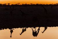 Namibia - Giraffenfamilie in der Abenddämmerung unterwegs.