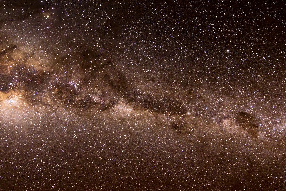 In het intense "donker"van de Namibische nacht licht de melkweg, met al z'n miljoenen sterren knalhelder op.