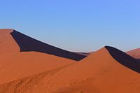 Enkel in Namibië kleurt het zand zo rood en de lucht zo blauw waardoor deze schitterende zandduinen zo mooi afsteken tegen de lucht. Gemaakt vanaf Dune 45, Sossusvlei