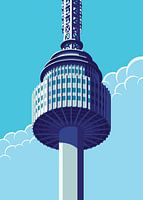 Dit kunstwerk toont de beroemde Namsan Seoul Tower tegen een levendige blauwe lucht met gestileerde wolken. Het ontwerp weerspiegelt het moderne silhouet van de toren'en zijn prominente plaats als herkenningspunt van de stad.
