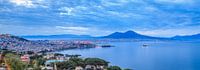 Een panorama van Napels in de blauwe - ochtend uren. Zicht op de Vesuvius, de stad Napoli, de Golf van Napels en de haven.