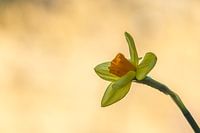 De narcis komt mooi los van de fraaie zachte gouden achtergrond (bokeh).