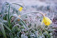 Narcis met rijp na een lange nacht vorst