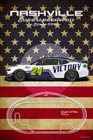 Illustratie van een serie legendarische Nascar circuits en raceauto's.