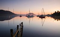 Nationaal Park Lake District, Ullswater, Engeland bij zonsopgang. Een mooi landschap bij de jachthaven waar zeilboten weerspiegelen in het meer. Ullswater is het op één na grootste meer van het Lake District, Cumbria en een veel gefotografeerde locatie in de landschapsfotografie omdat het bekend staat om zijn Romantische fotogenieke…
