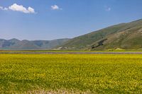 Nationaal Park Monti Sibillini (Apennijnen) in Italië (1). Foto gemaakt in juni 2025. De uitgestrekte velden op de hoogvlakte bij Castellucio staan op het punt in volle bloei te komen.