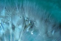 Macrofotografie van een paardenbloem en waterdruppels, digitaal bewerkt.