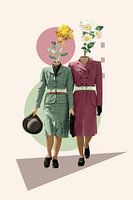 Collage van diverse vintage afbeeldingen, vormen en kleuren.