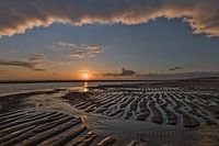 De wolken vormen een natuurlijke omlijsting, de patronen in het zand herhalen deze vorm.