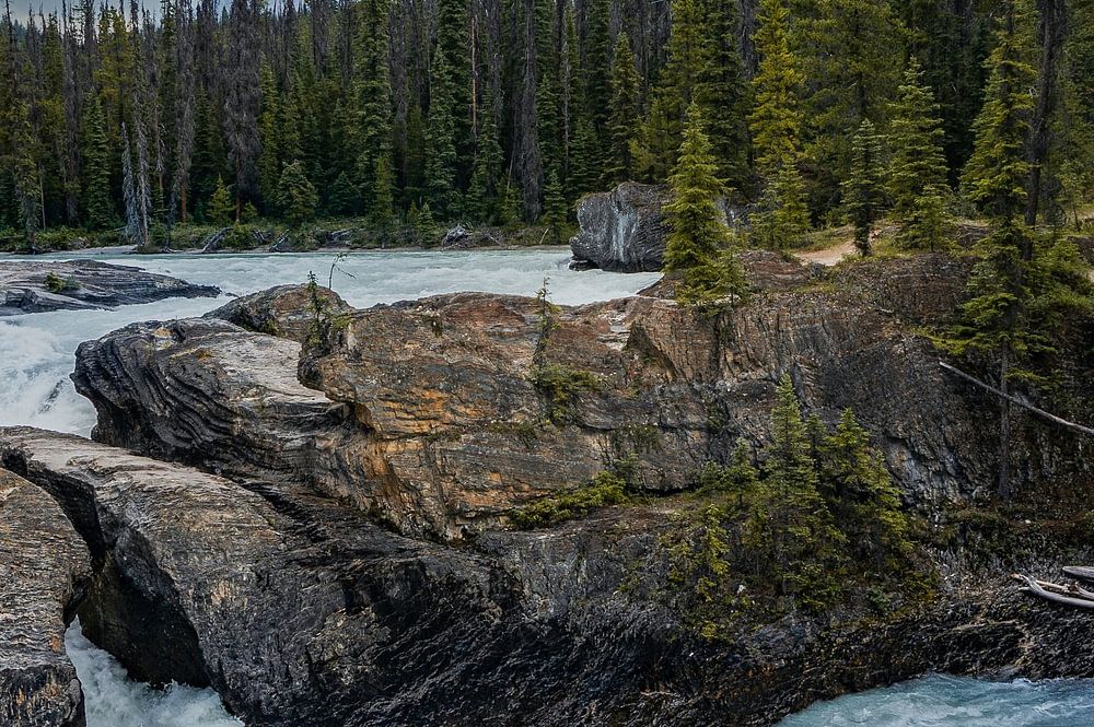 Deze natuurlijke brug in Yoho National Park trotseert dagelijks de kracht van de rivier. Een prachtig natuurfenomeen in British Columbia.