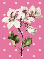 Breng een vleugje vintage charme en botanische schoonheid in huis met deze vintage illustratie van de Pelargonium album bicolor, op een moderne roze achtergrond.