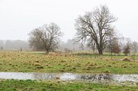 Nature reserve of the River Dyle valley, a natural flood plain area during a foggy winter day