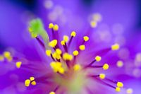 Waan je in de wereld van insecten. Hoe kun je dan zo'n schouwspel van vuur en kleuren weerstaan! Een explosie van kleur lonkt naar je. Straks vanaf jouw muur. Prachtige complementaire kleuren paars en geel. Hoe een bloem door de lens een sprankelend vuurwerk wordt.