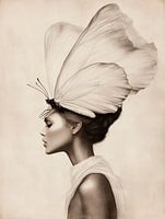 Dit kunstwerk straalt een combinatie uit van natuurlijke gratie en verfijnde elegantie. De delicate vleugels van de vlinder symboliseren vrijheid en lichtheid, terwijl het vrouwelijke silhouet een gevoel van tijdloze schoonheid oproept. Het subtiele kleurenpalet en de verfijnde details geven dit portret een serene, bijna dromerige sfeer. Ideaal voor liefhebbers van kunst die de harmonie tussen mens en natuur willen benadrukken.
