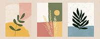 Details: tak, groen, botanisch, schilderij, modern, minimalistisch, kleuren, geel, roze, wit, natuur