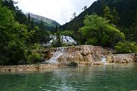 De natuur op zn best in Huanglong national park, China. De waterval in combinatie met het groene water en de groene achtergrond maken het plaatje compleet.